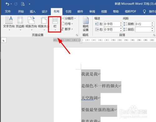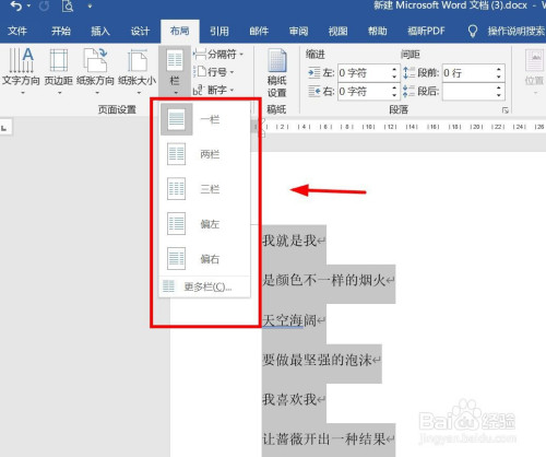 可以看到有多个分栏可选择。例如点击“两栏”。