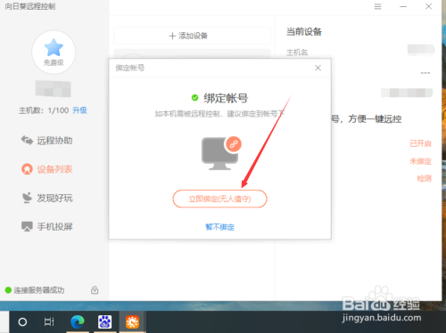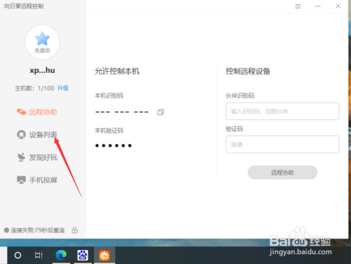 在电脑上运行标的目的日葵客户端后,点击左侧的“设备列表”。