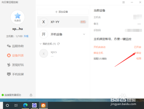 右侧显示本机界面后,点击绑定本家儿机后面的“未绑定”。