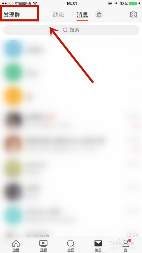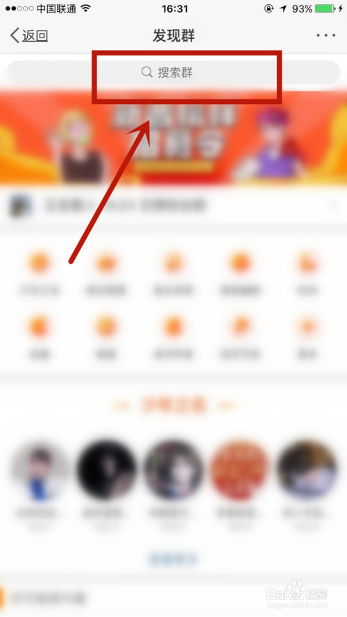 2.点击左上角的发现群,再点击最上方的搜索框。