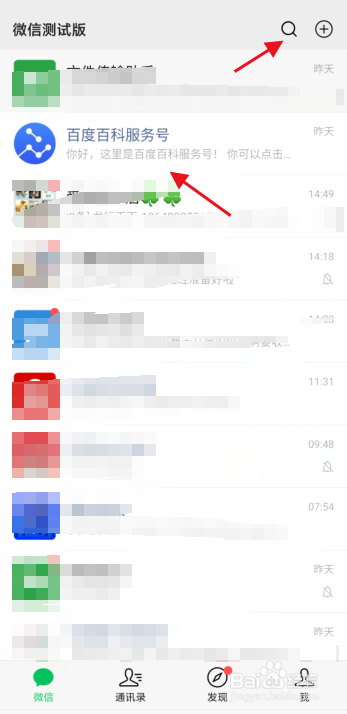 1.进入微信后,进入百度百科办事号,可以直接经由过程上方的搜刮按钮进行搜刮。