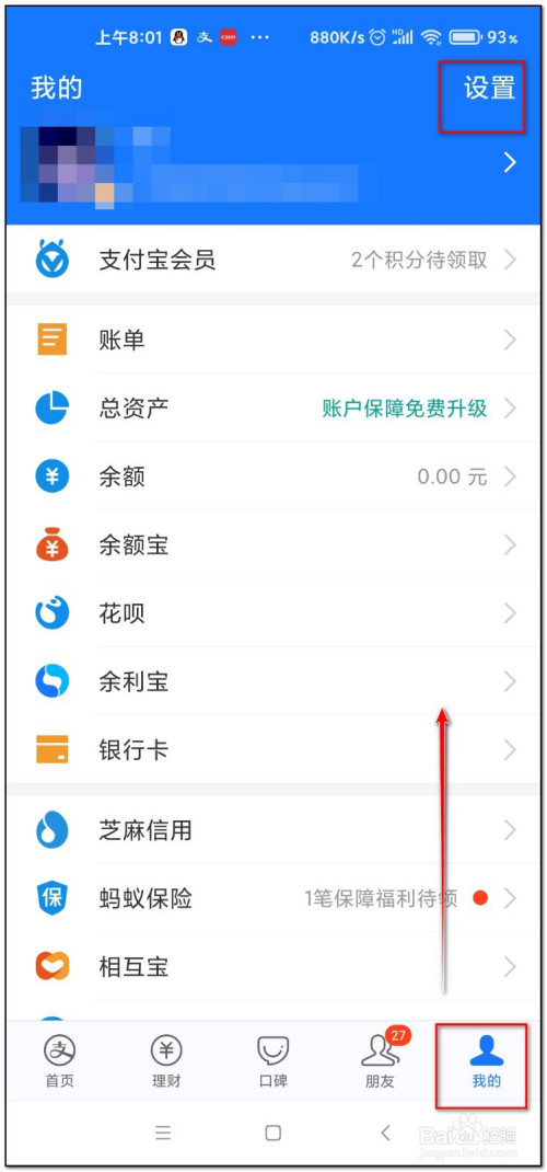 开启支付宝点击我界面“设置”