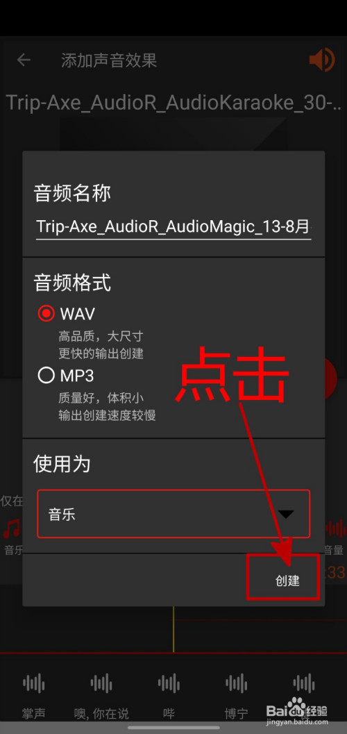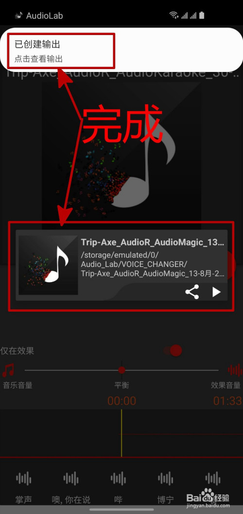 文件导出后,会有动静提醒导出当作功,我们就当作功的给该音频添加了sfx。