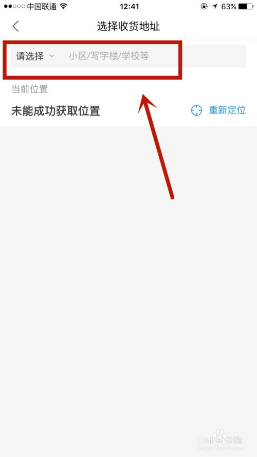 点击页面最上方的输入框,将本身的准确收货地址输入在内。