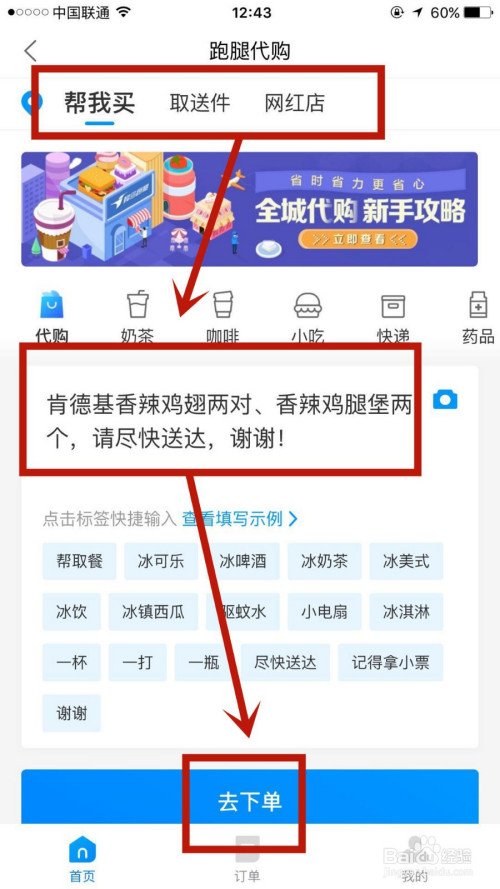 3.选上要同城的体例以及要代买的工具,点击下方的去下单,即可当作功操作。