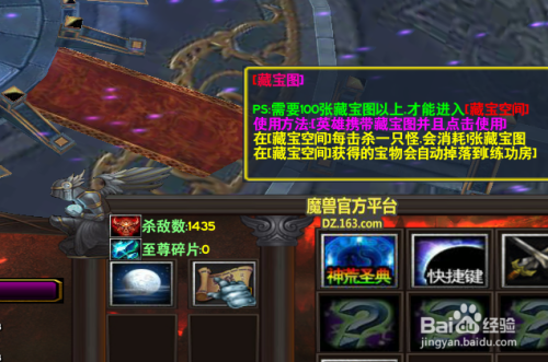 刷怪时,地上有必然几率失落落藏宝图,我们拾取之后,够100个就可以利用。