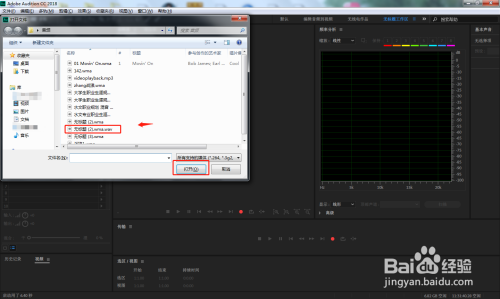 在弹出的导入文件窗口中,选择需要的音频文件,然后点击打开。