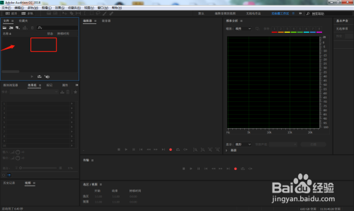 1.首先在电脑中打开AU软件,点击左上角区将需要的音频素材导入。