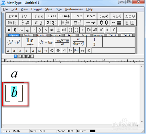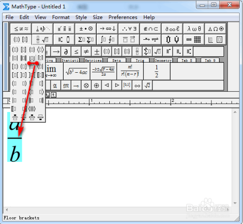 全选上述式子,在菜单栏中,找到并点击“下半框的中括号”,具体如图所示: