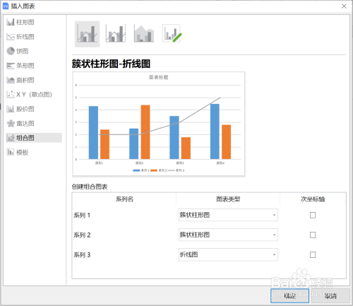 这时我们找到此中的“折线图”,然后点击此中的“簇状柱形图-折线图”即可