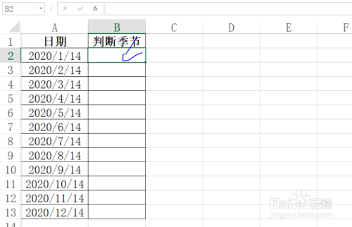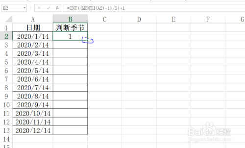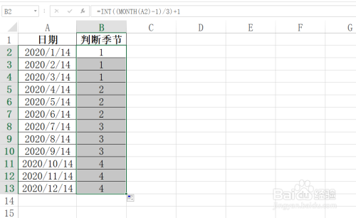 成果如图所示,即实现了Excel工作表快速判定日期属于哪个季候。