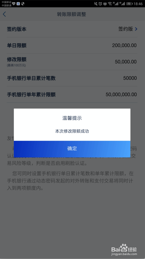在【转账限额调整】中,输入【点窜限额】后,点击【点窜限额】,如下图所示。