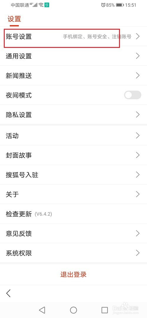 第二步进去搜狐新闻设置之后,点击账号设置,如下图所示:
