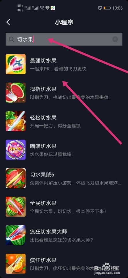 在搜索框里输入切生果,点击搜刮出来的成果就可以进入切生果游戏了。