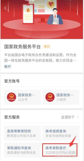 点击【高考登科查询】。