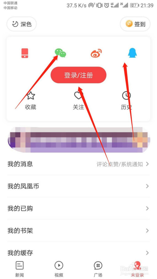 在“我”的页面按照页面提醒选择一种体例登录“凤凰新闻”。如图: