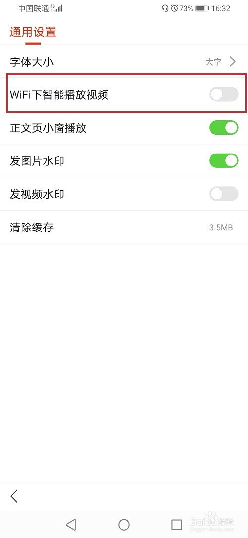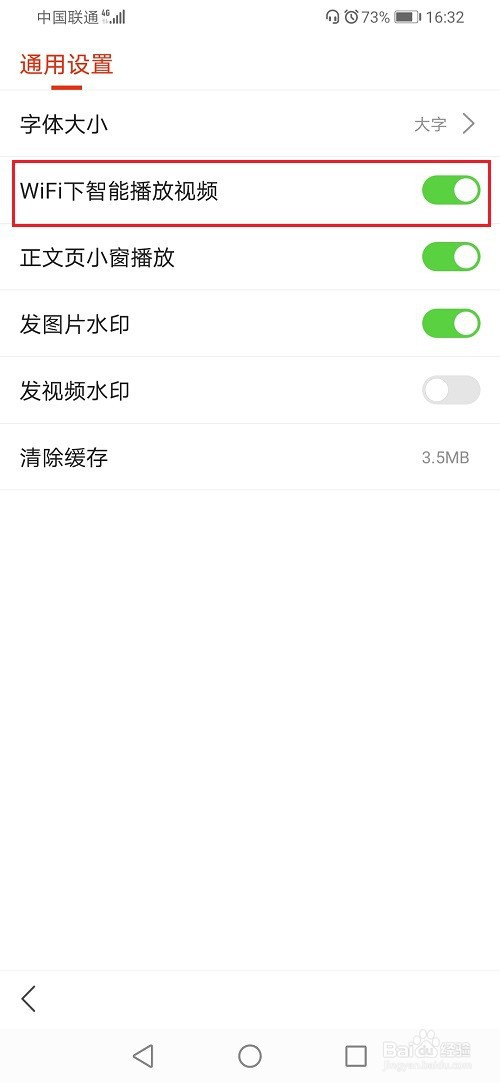 第四步进去通用设置之后,点击封闭wifi下智能播放视频