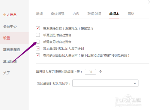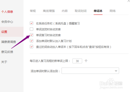 5、点击勾选上单词复习时主动发音。