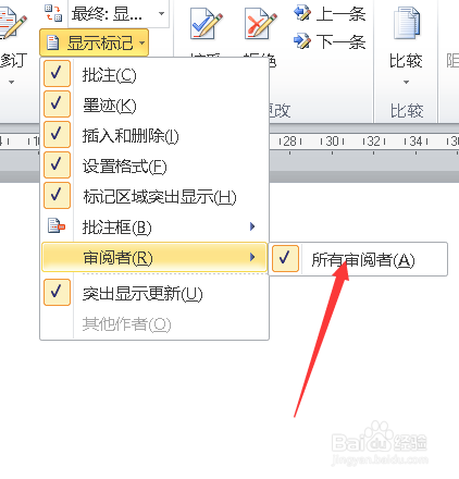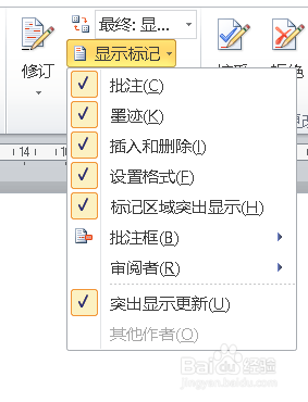 在修订栏找到【显示标识表记标帜】。