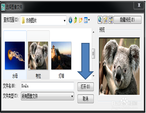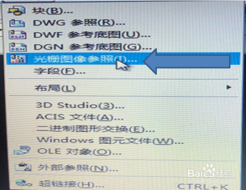 3.在弹出的对话框中,如下图所示,我们选择光栅图像参照