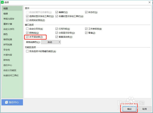 在窗口选项里面有一个【程度滚动条】勾选项,此刻这个勾选项是没有勾选的