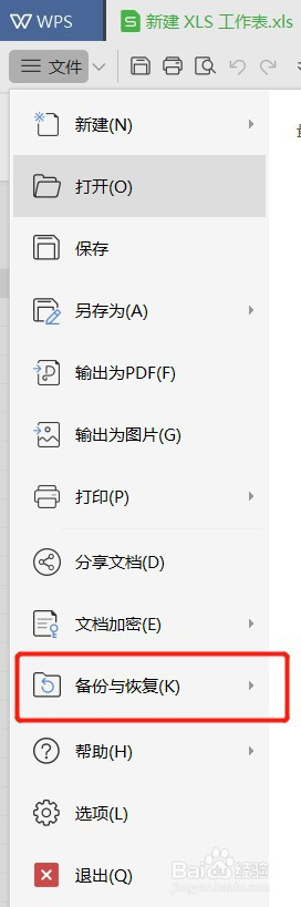 选择【文件】菜单下的【备份与恢复】