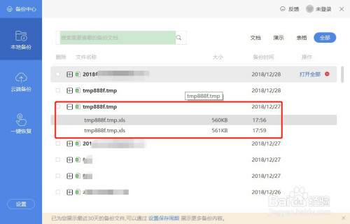 在当地备份里面的列内外面按照时候找到文件