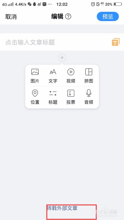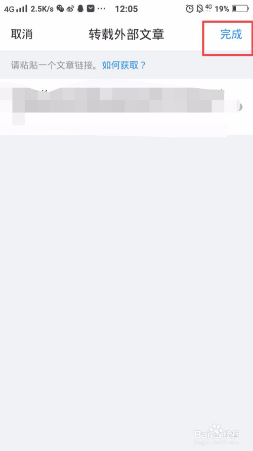 把外部文章的链接粘贴到此处,然后点击【完当作】。