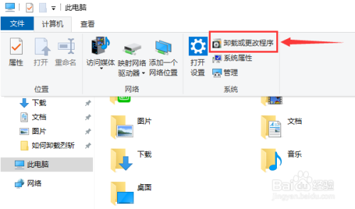 在“计较机”页面,点击“卸载或更改程序”。见下图