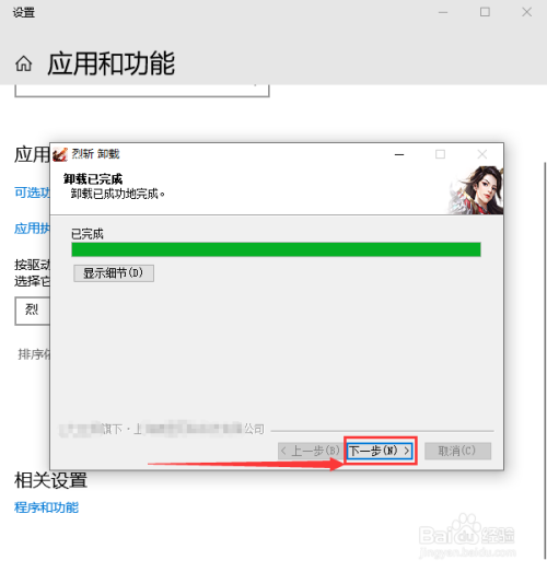 【9】在“卸载已完当作”页面,点击“下一步”按钮。