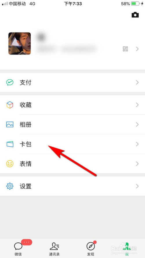 进入微信后,在我的页面中找到卡包,点击进入卡包