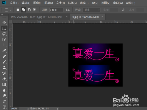 利用“矩形选框东西“选择想要进行处置的文字,并执行”选择“-”色彩规模“打开色彩规模选项卡;