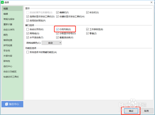 勾选【行号列标】,点击下面的【确定】