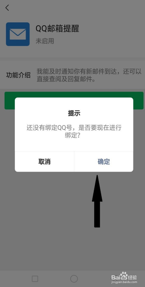 这时就会跳转到绑定QQ号页面,选择确定。然后本身进行绑定,绑定当作功后就会开启QQ邮箱通知