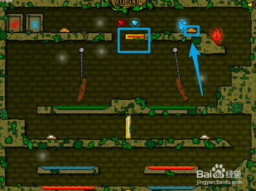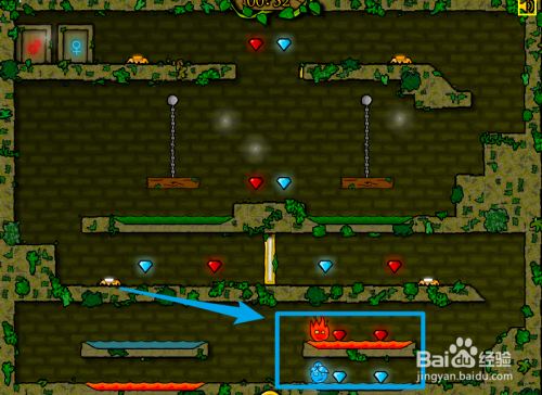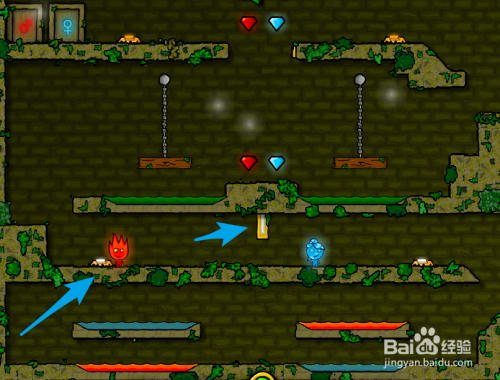 进到第二关,有二层互换的火海和冰海,注重冰女孩只能过冰海,不克不及碰火海,同样火男孩只能碰火海