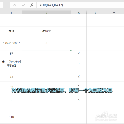 OR函数的功能是:对参数的逻辑值求或运算,即有一个为真就为真