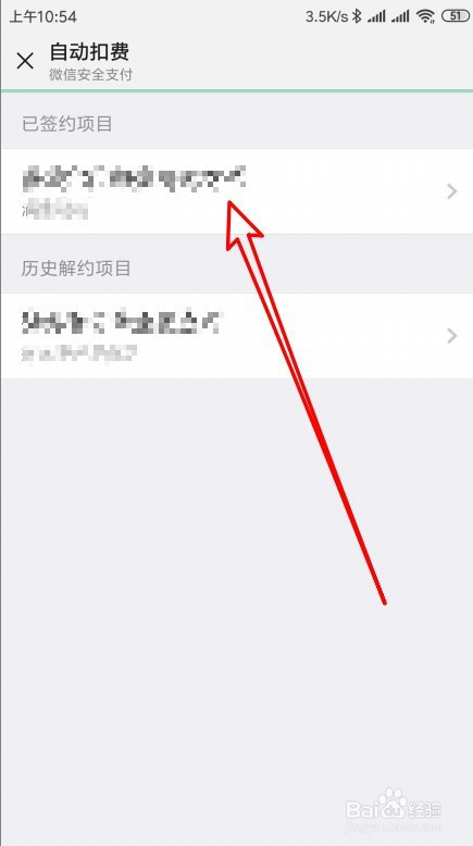 在打开的主动扣费页面,找到已签约项目,点击签约项目标快捷链接。