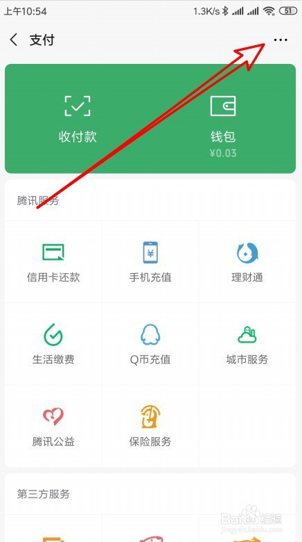 打开微信的支付页面,点击右上角的更多按钮。
