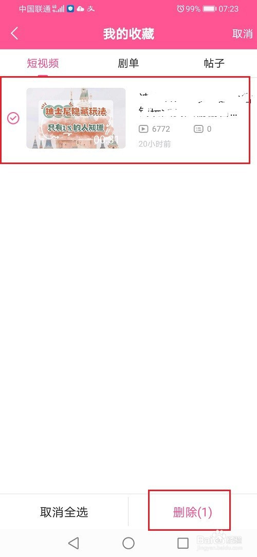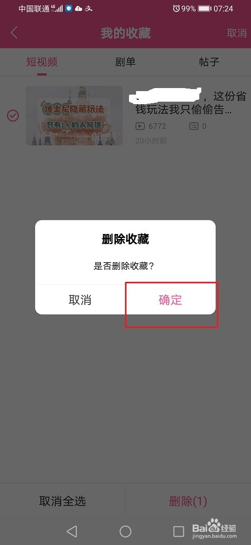 第三步点击删除图标之后,选摘要打消保藏的内容,点击删除