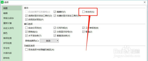 勾选【状况栏】,点击下方的【确定】