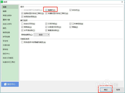 勾选【编纂栏】,点击下面的【确定】