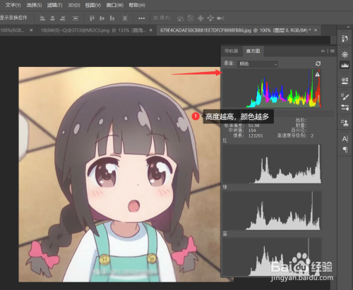 从直方图中我们就可以看到颜色的分布。