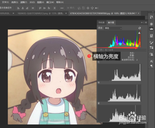 直方图的横轴,也就是程度偏向的为亮度。