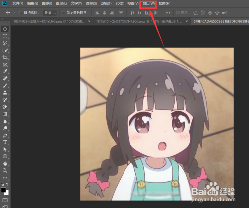 首先打开Photoshop软件,进入本家儿界面后导入一张图片,点击菜单栏中的【窗口】选项。
