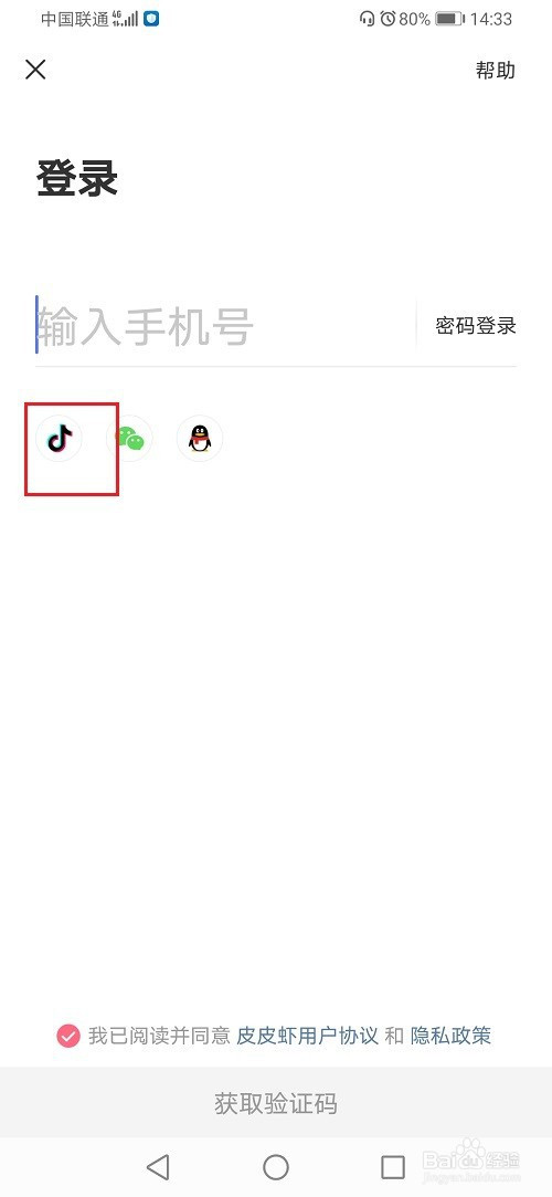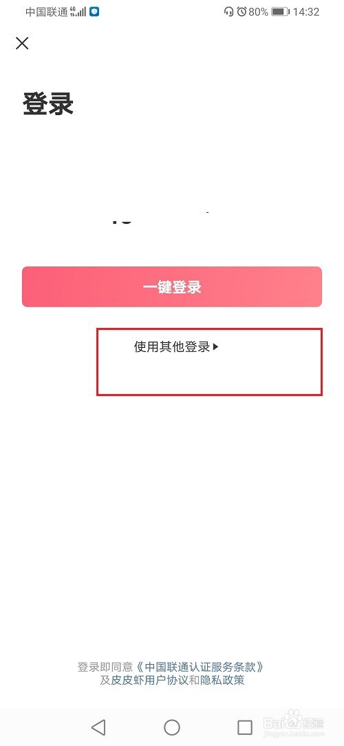 第二步进去皮皮虾登录界面之后,点击利用其他登录