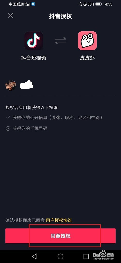 第四步进行抖音授权登录,点击赞成授权