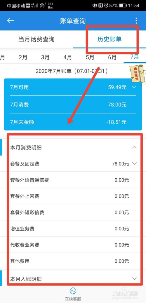接下来在汗青账单页面,可以看到其他月份账单明细,详情如下。