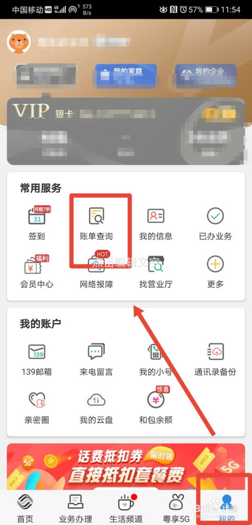 方式2,可以在我的页面,找到账单查询功能,点击进入;