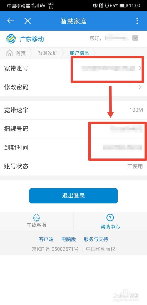 在账号查询页面,即可查到打点的宽带账号、绑定手机号以及到期时候。