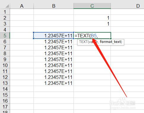 然后,输入text公式。如图: